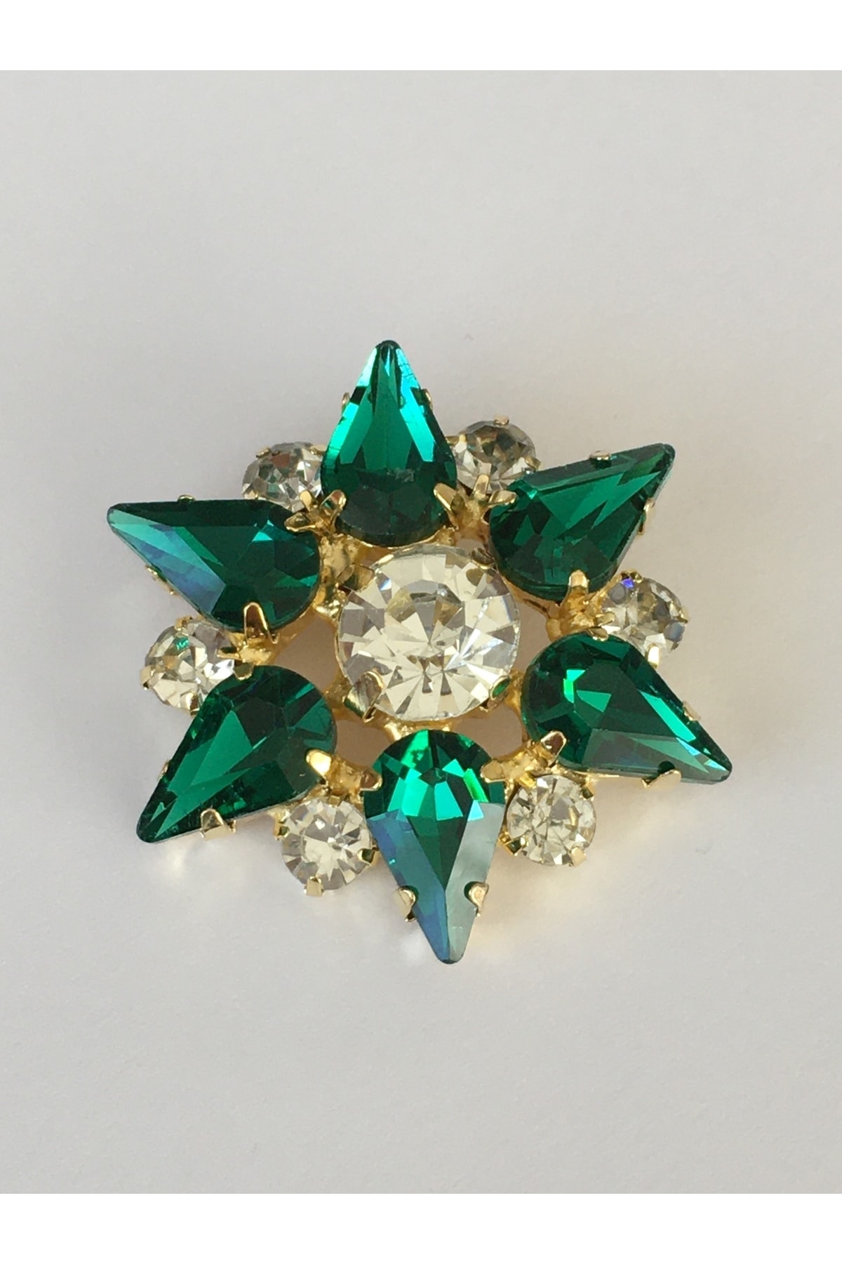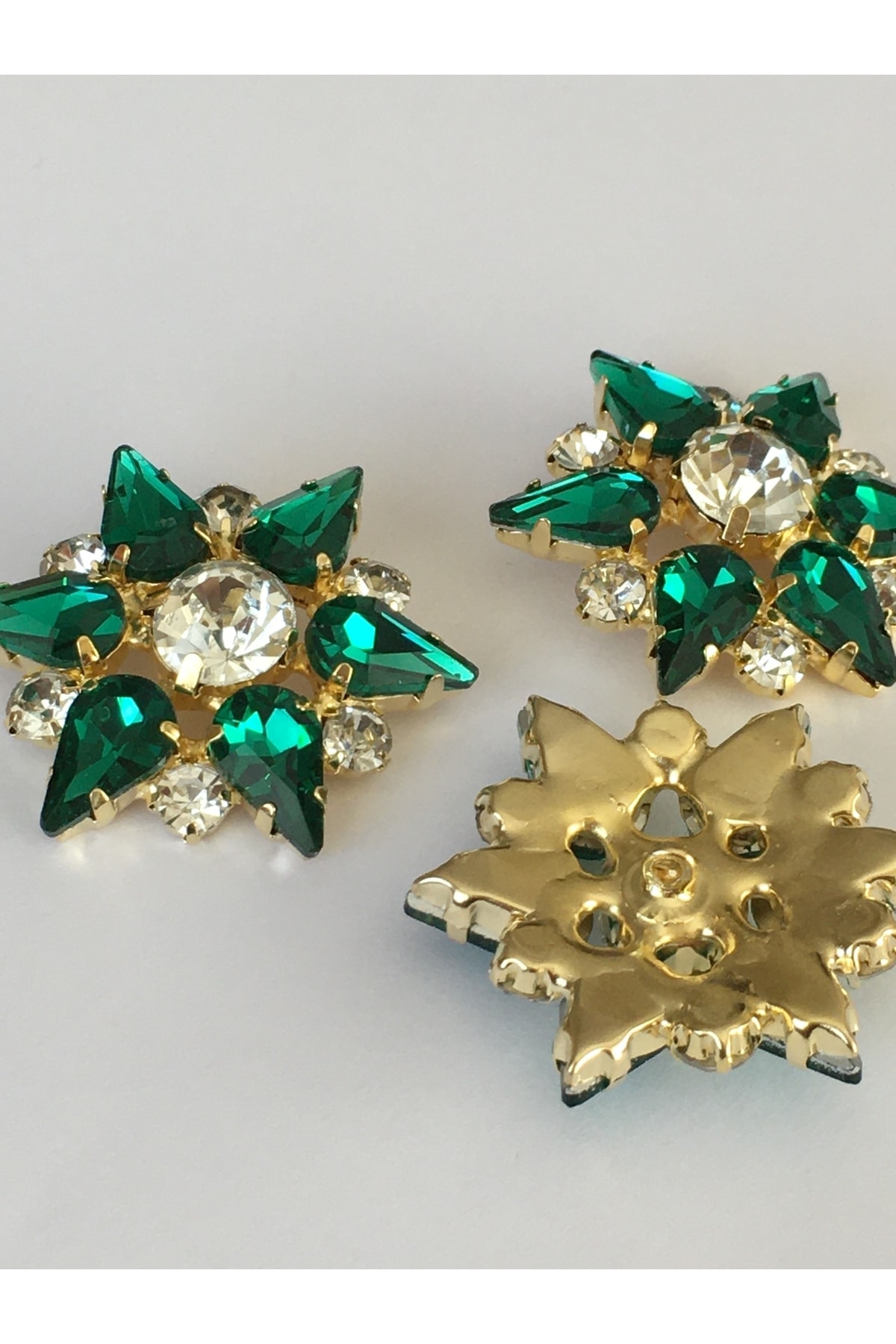 Large star model button; Stone color Emerald green; Case color is gold; 3 buttons are sent with 1 purchase; With handle on the back; It is a decorative button; Its stones are shiny; Dimensions are available in the photos; ;
