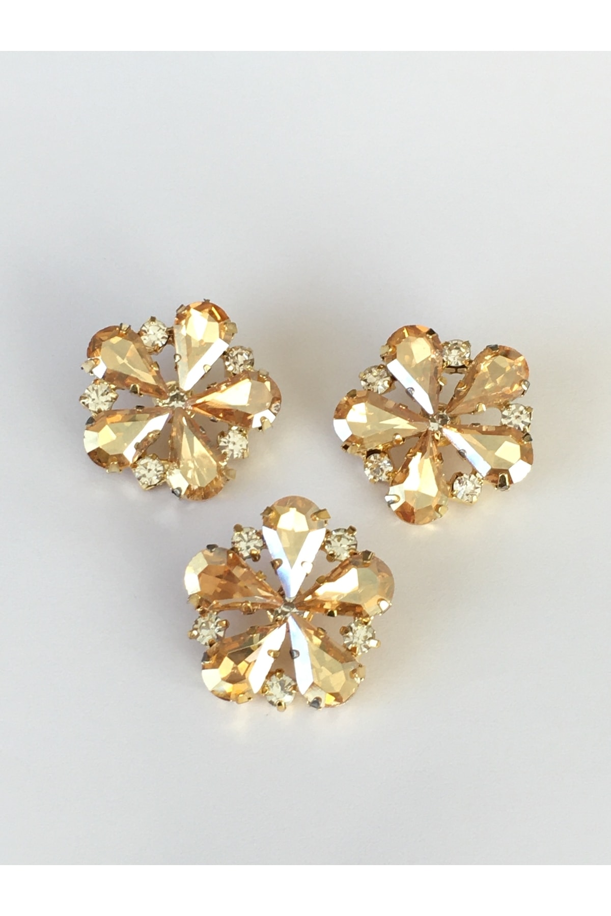 Stony button clover model; 3 buttons are sent with 1 purchase; Stone color is gold; Case color is gold; Dimensions are available in the photos; It is a shiny stone button; It is a stylish decorative button; With handle on the back; ;