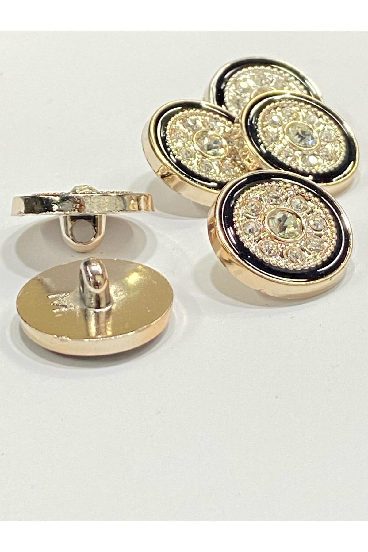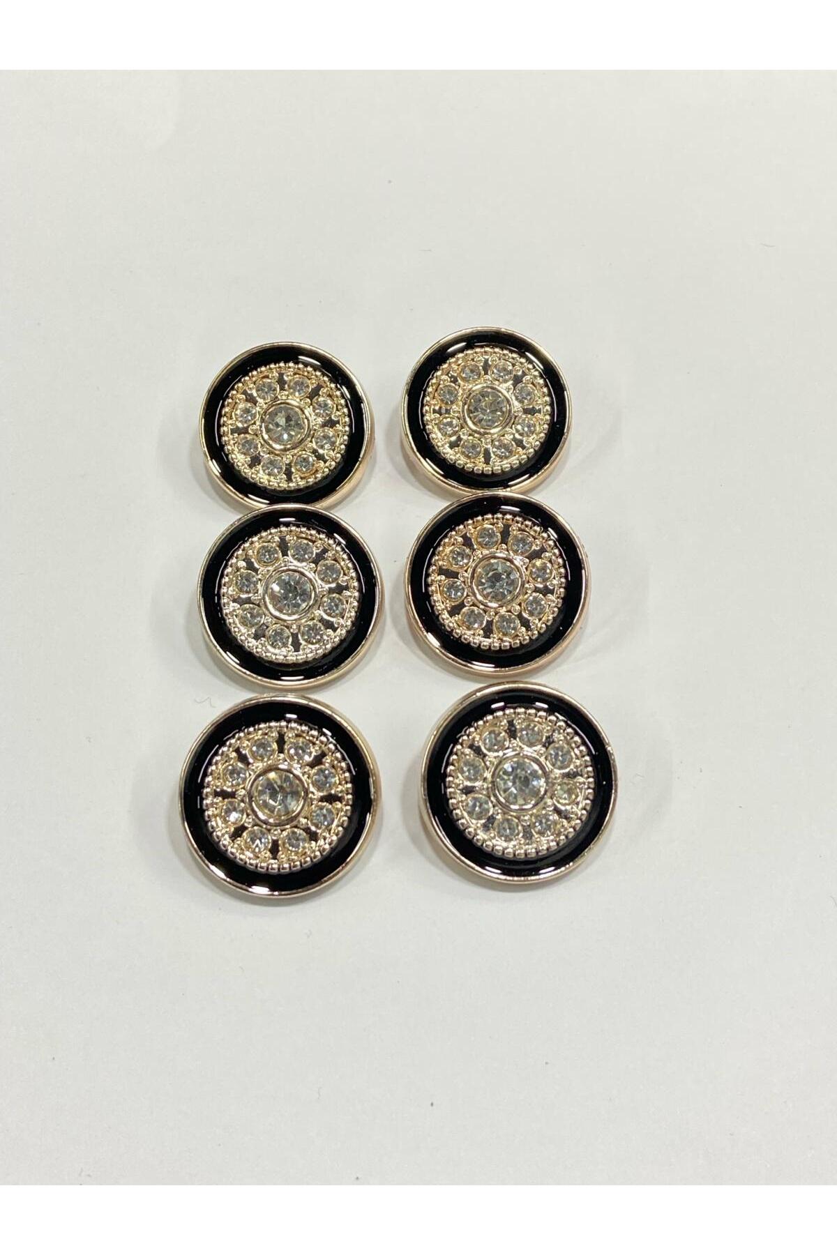 Stoned Button / Black Enameled Gold (metalized) / Set of 6 / 2.2 cm