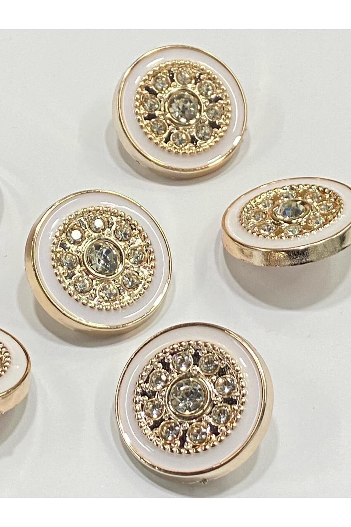 Stoned Button / White Enameled Gold (metalized) / Set of 6 / 2.2 cm