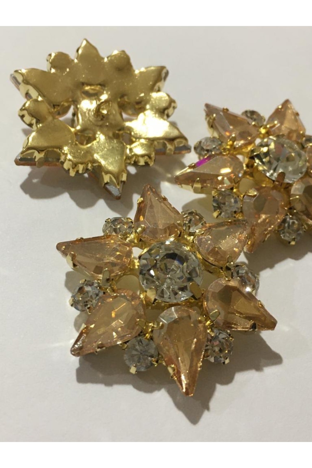 Stoned Button Big Star Model Set of 3 Gold