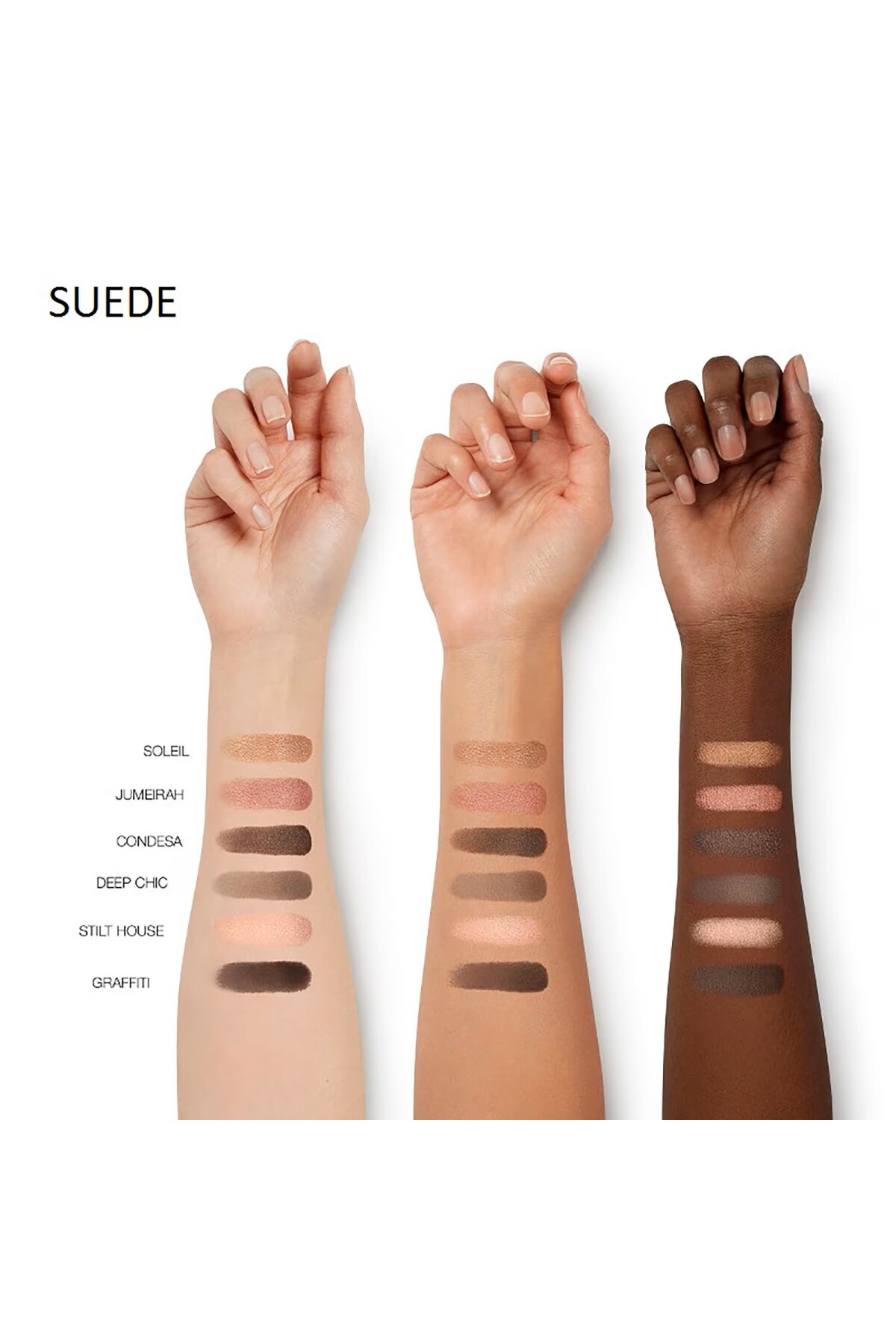 The new lightweight palettes feature six stylish colors in one palette. Five different palettes offer a wide selection of creamy mattes, shimmering satins and multidimensional shimmers. Shades (Left to right, top to bottom): DEIRA, sparkling lilac